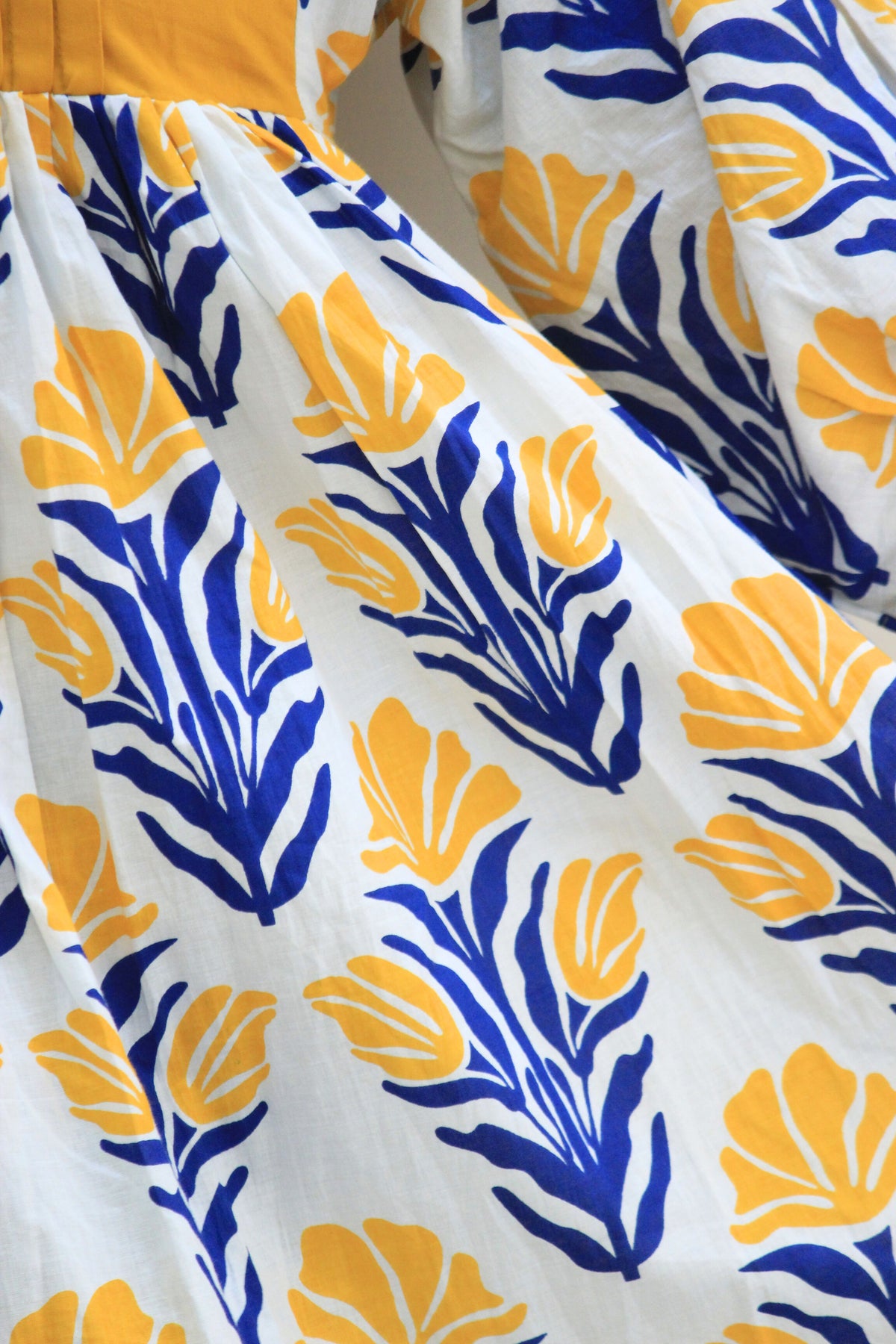 Kanika – Yellow Yoke Floral Printed Cotton Dress