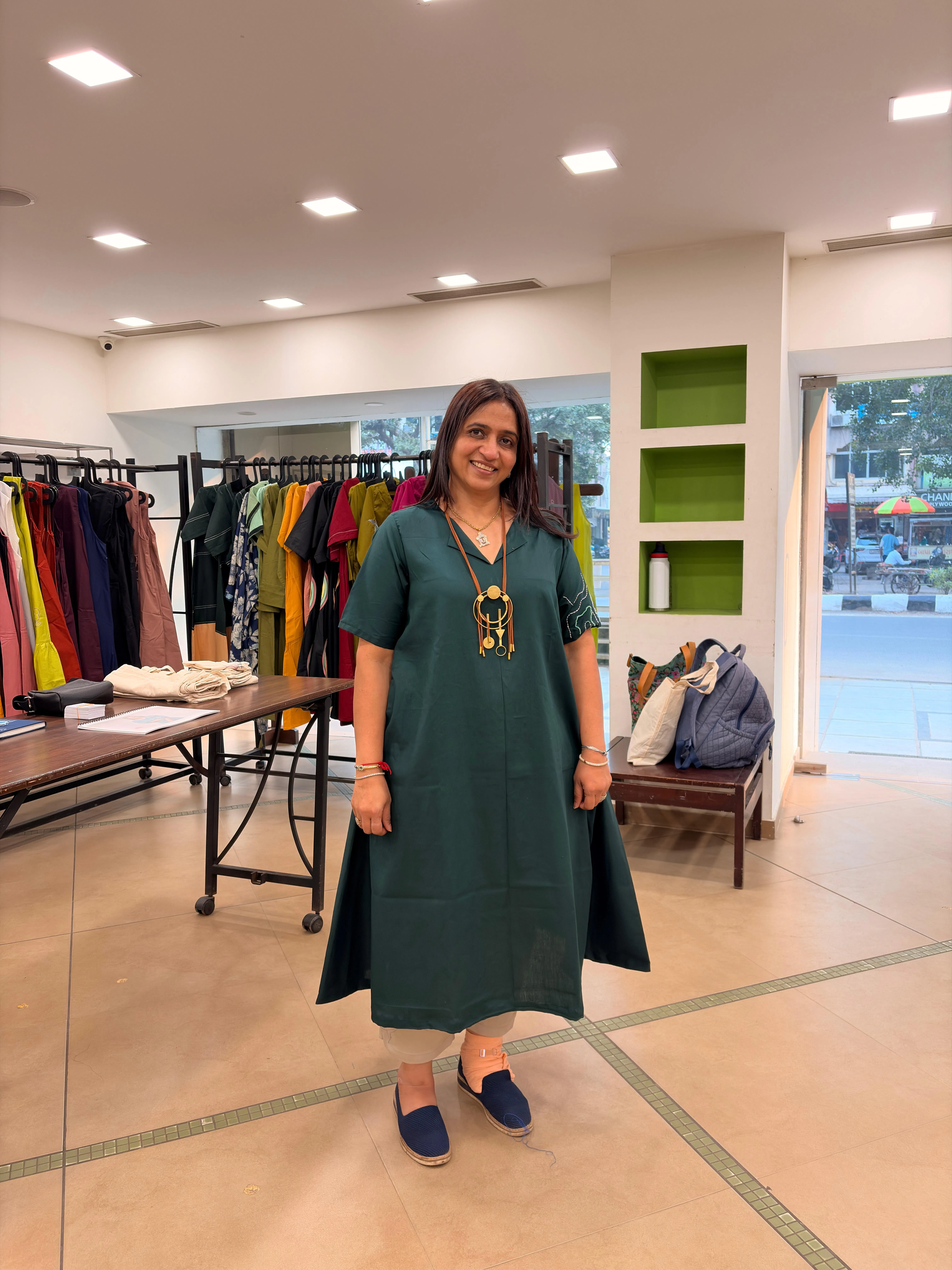 Dark Green Hand Emboidered Cotton Dress