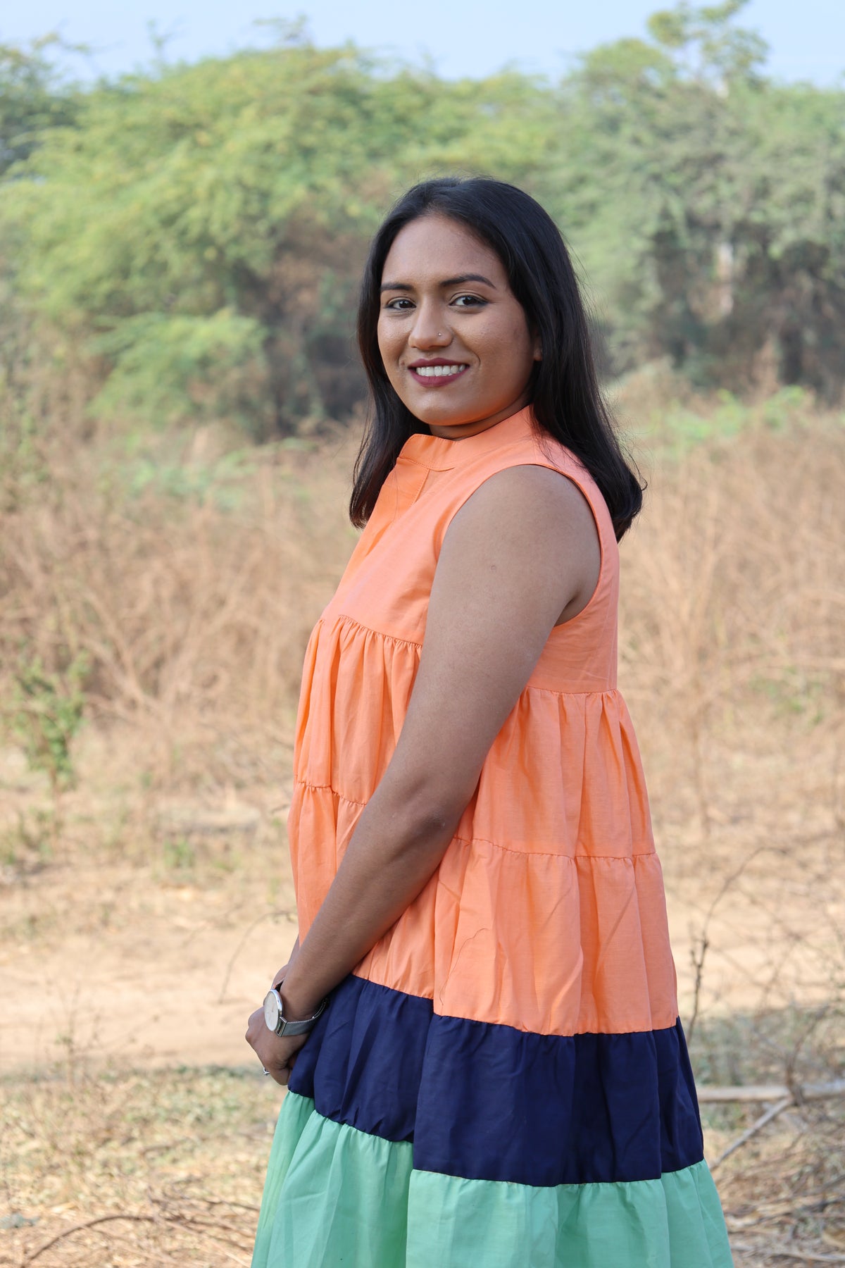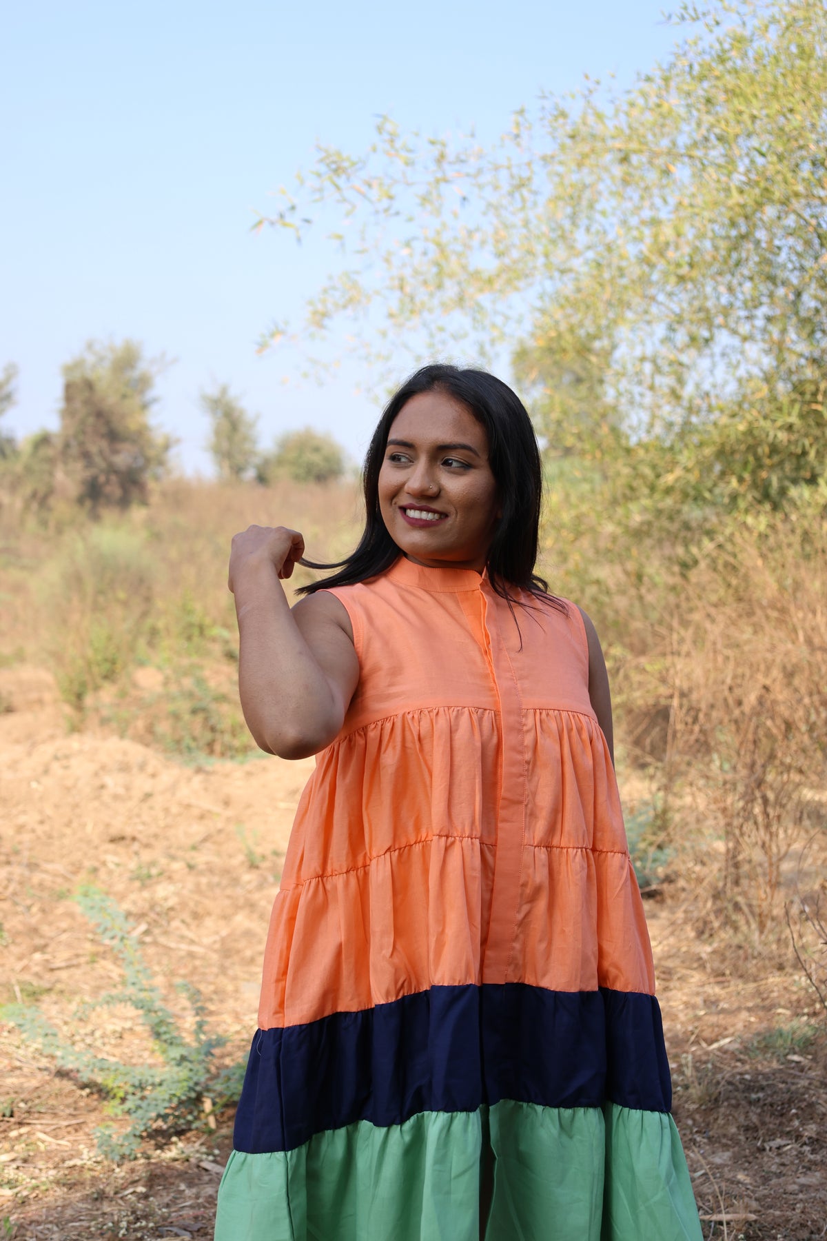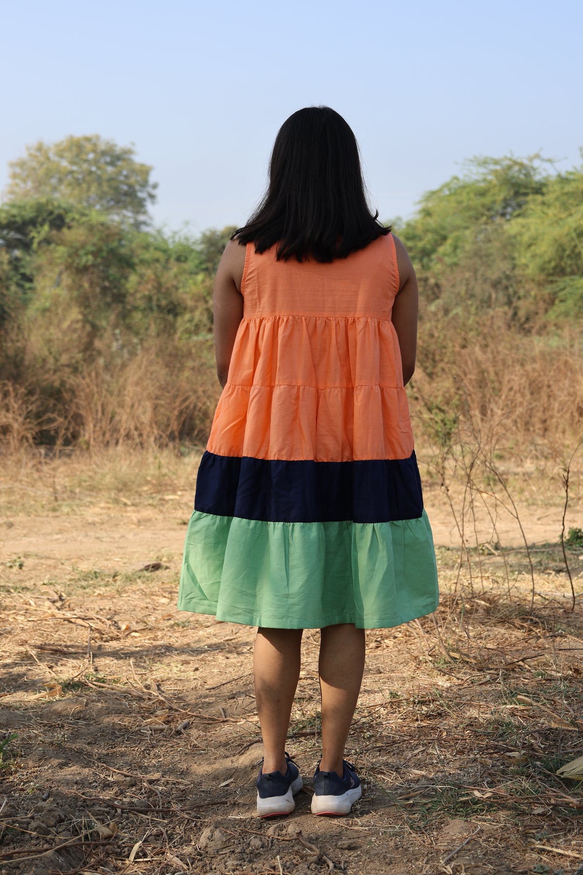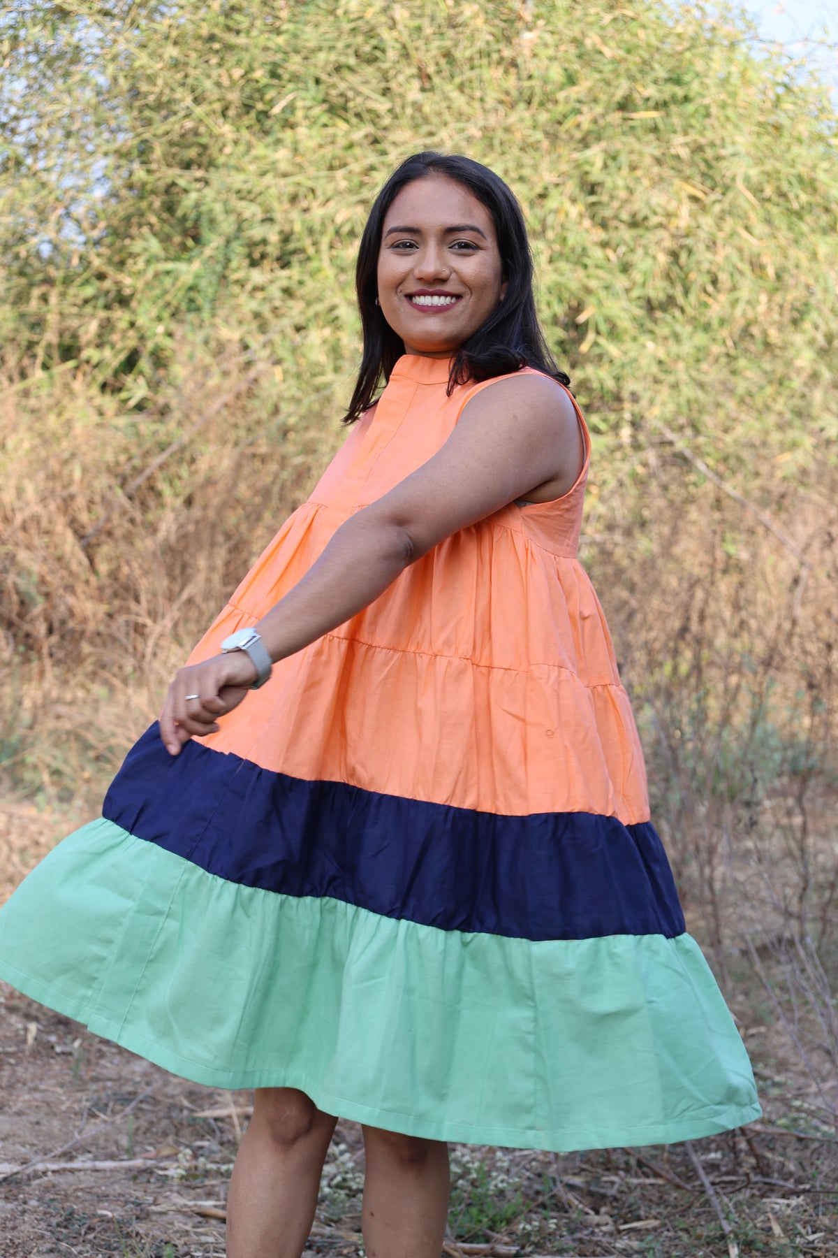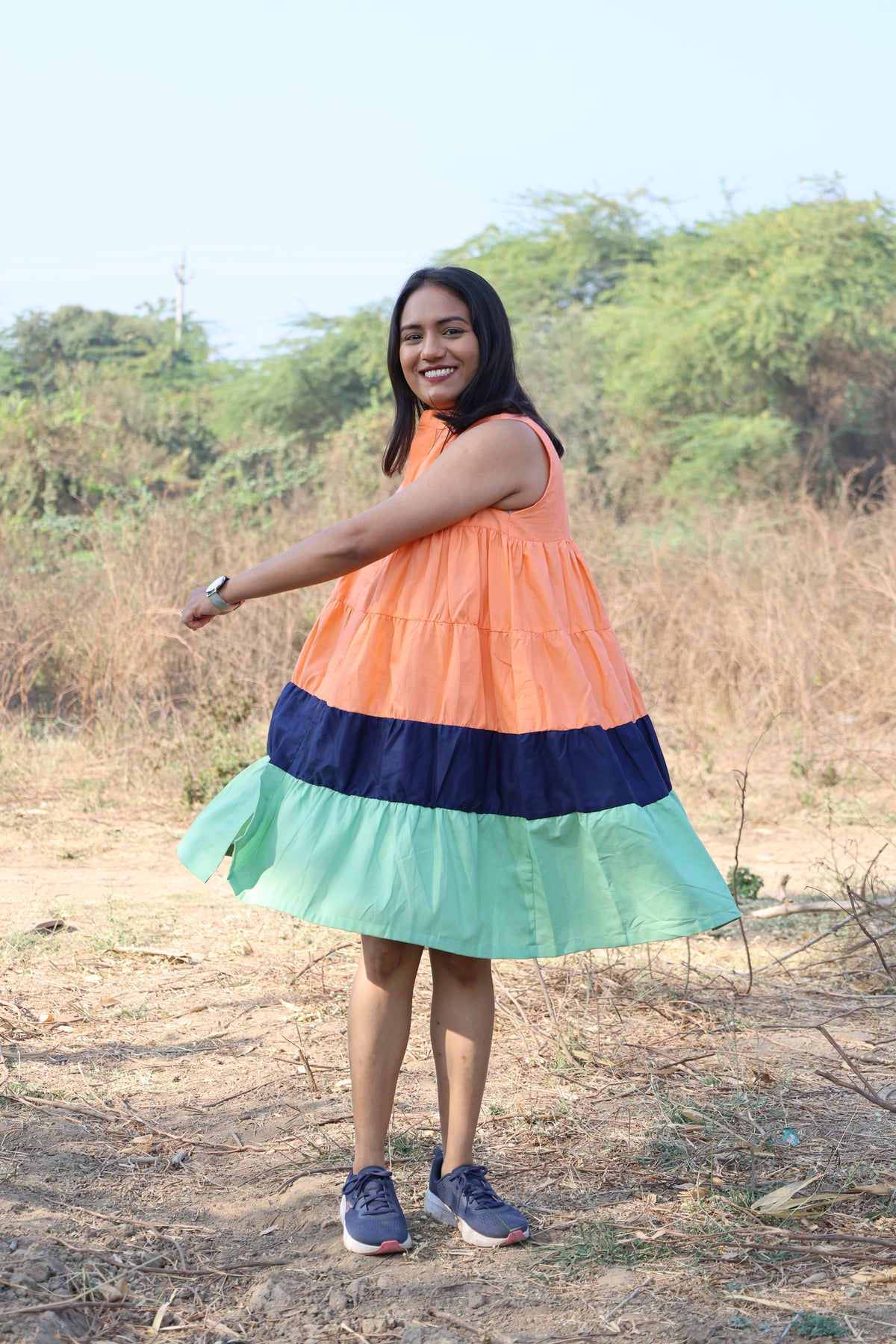 Tiered Color Block Design – A blend of orange, navy, and green for a chic, modern look.