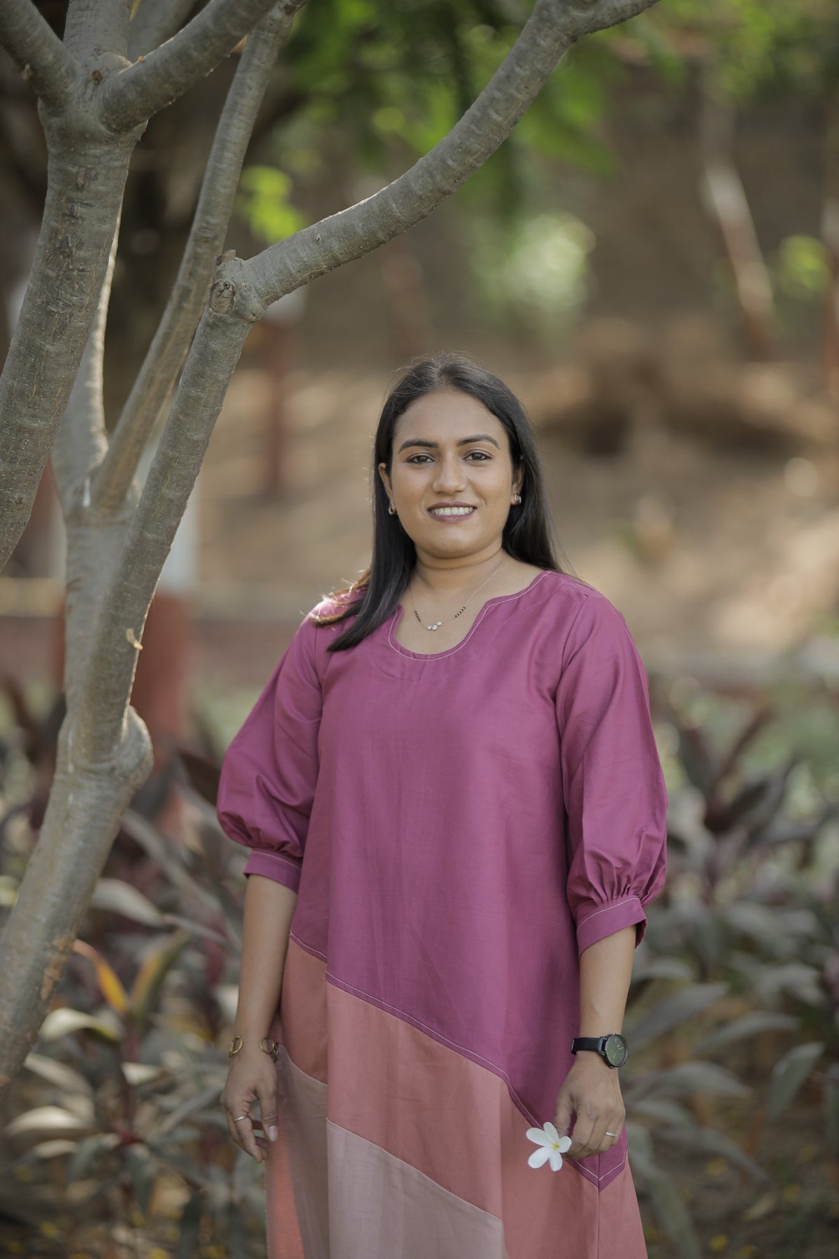 Add a touch of serene charm to your wardrobe with the Sahej Dress – a colorblock beauty designed for effortless everyday elegance. Crafted from 100% pure cotton, this mauve and blush midi dress offers a breezy, relaxed silhouette with flowy sleeves and a soft round neckline. Whether you're stepping out for brunch, a casual office day, or a garden get-together, Sahej brings comfort with grace.