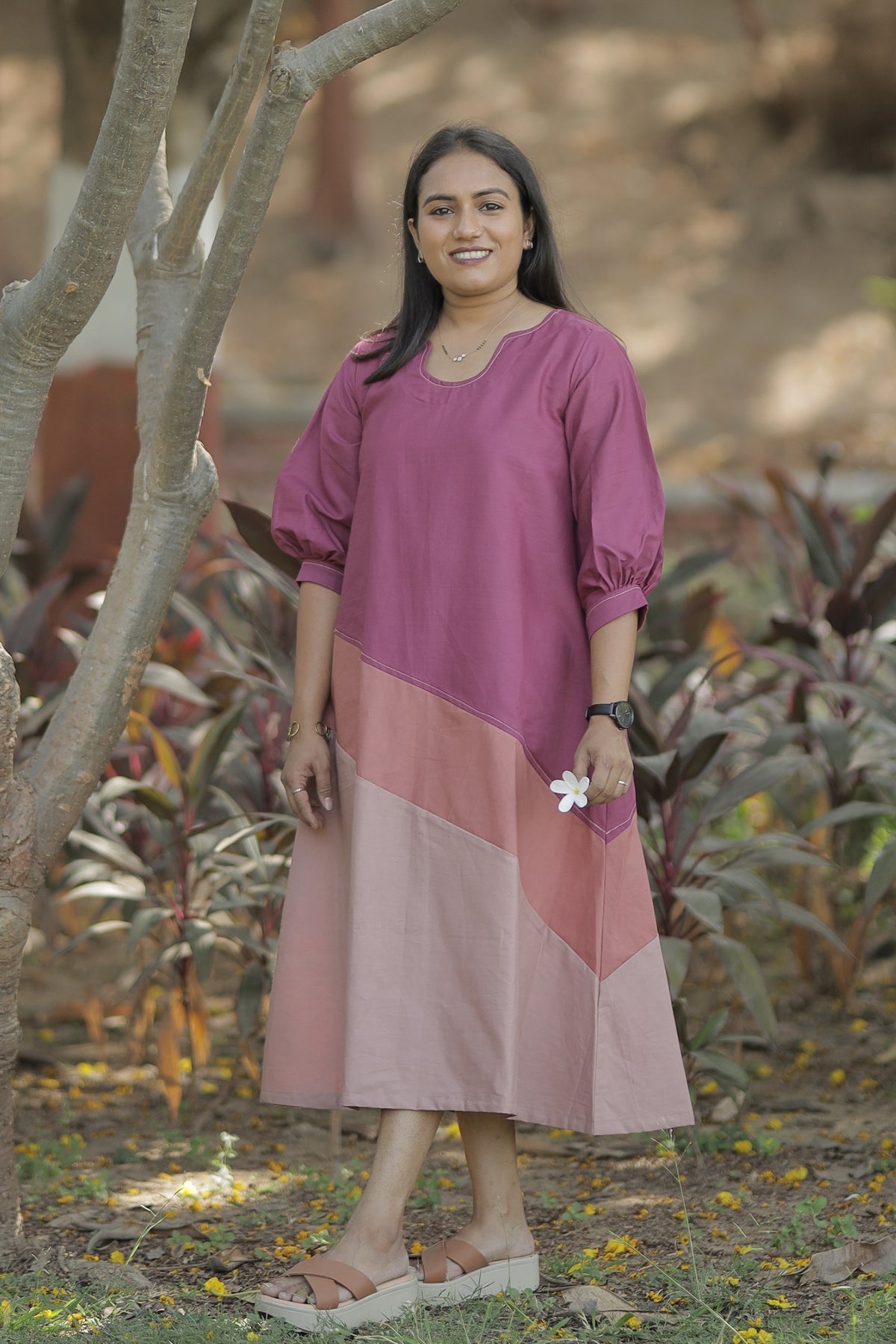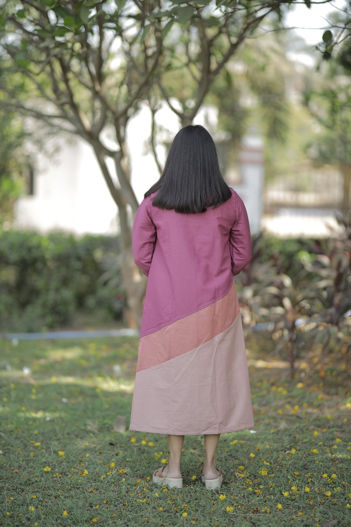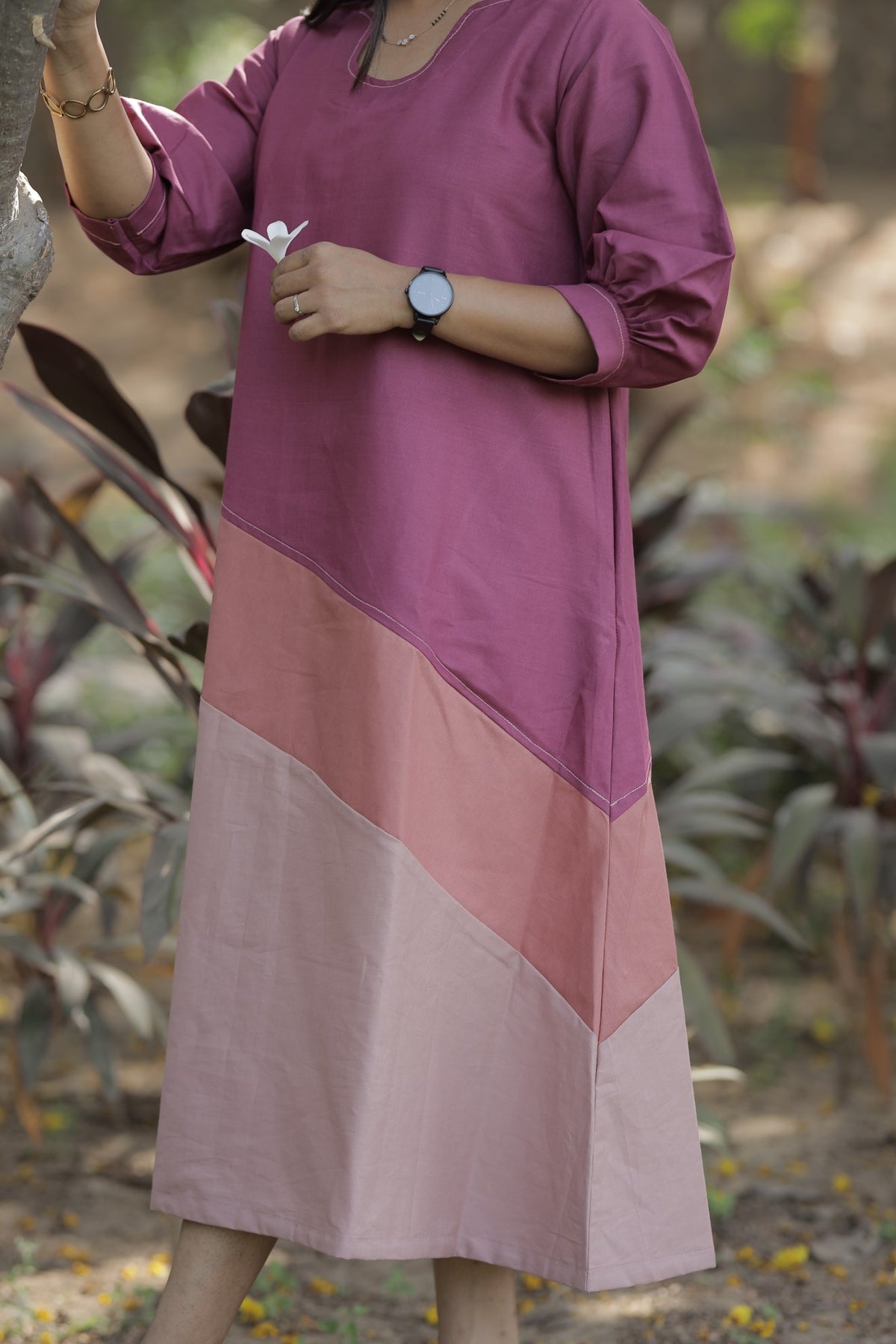 Sahej - Mauve & Blush Colorblock Cotton Dress