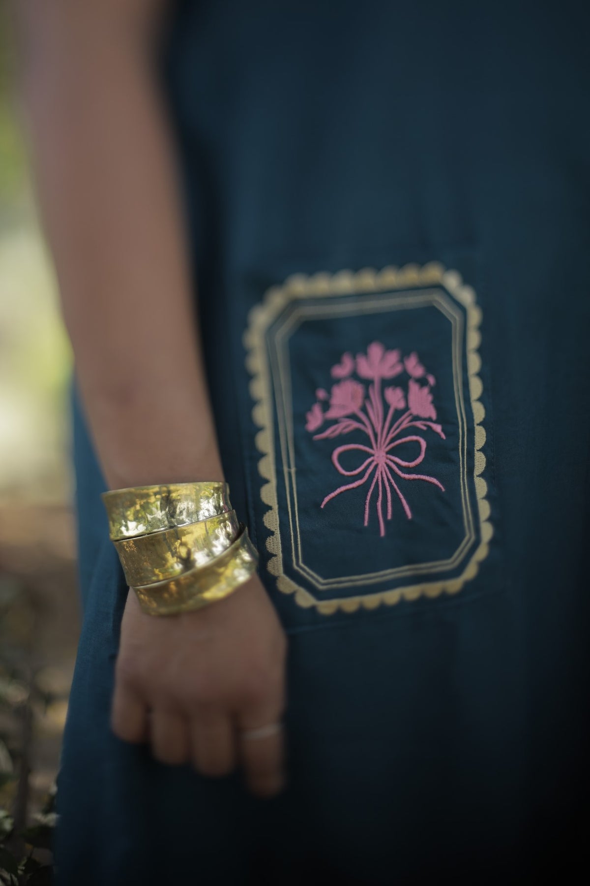 Embroidered Pocket Detail – Floral motifs for a unique handcrafted look