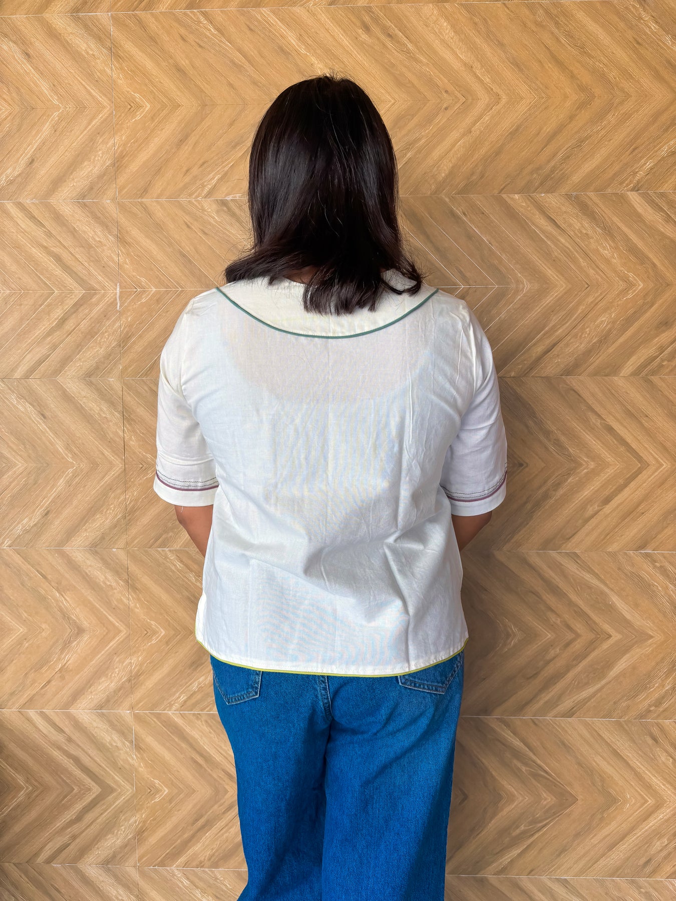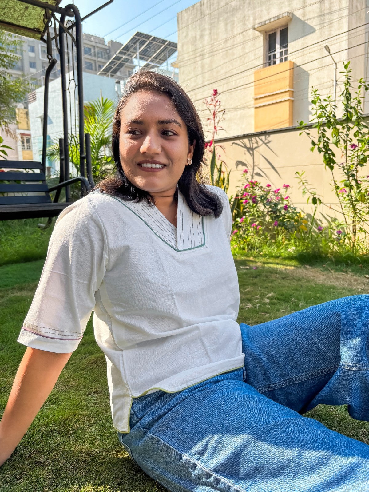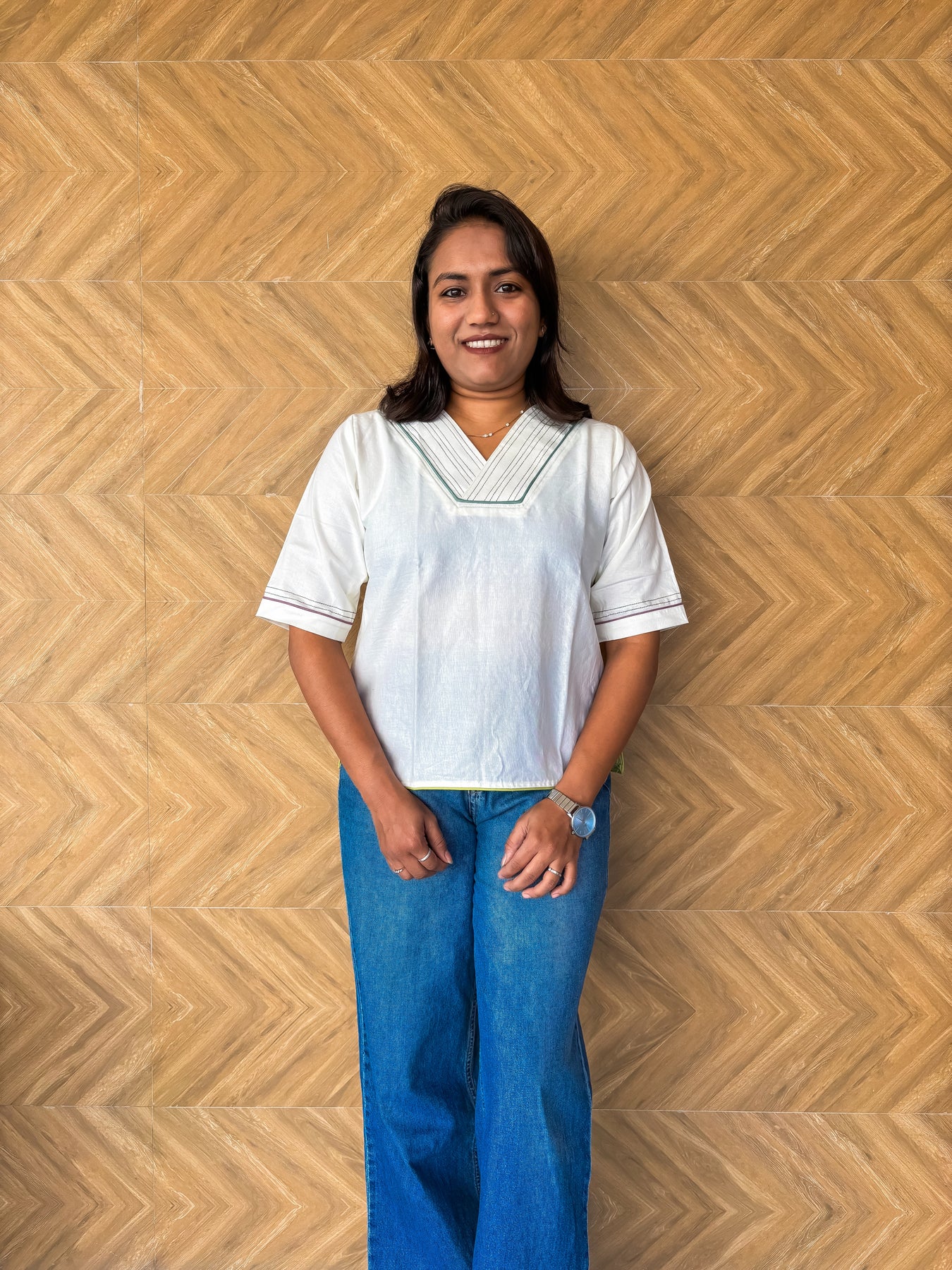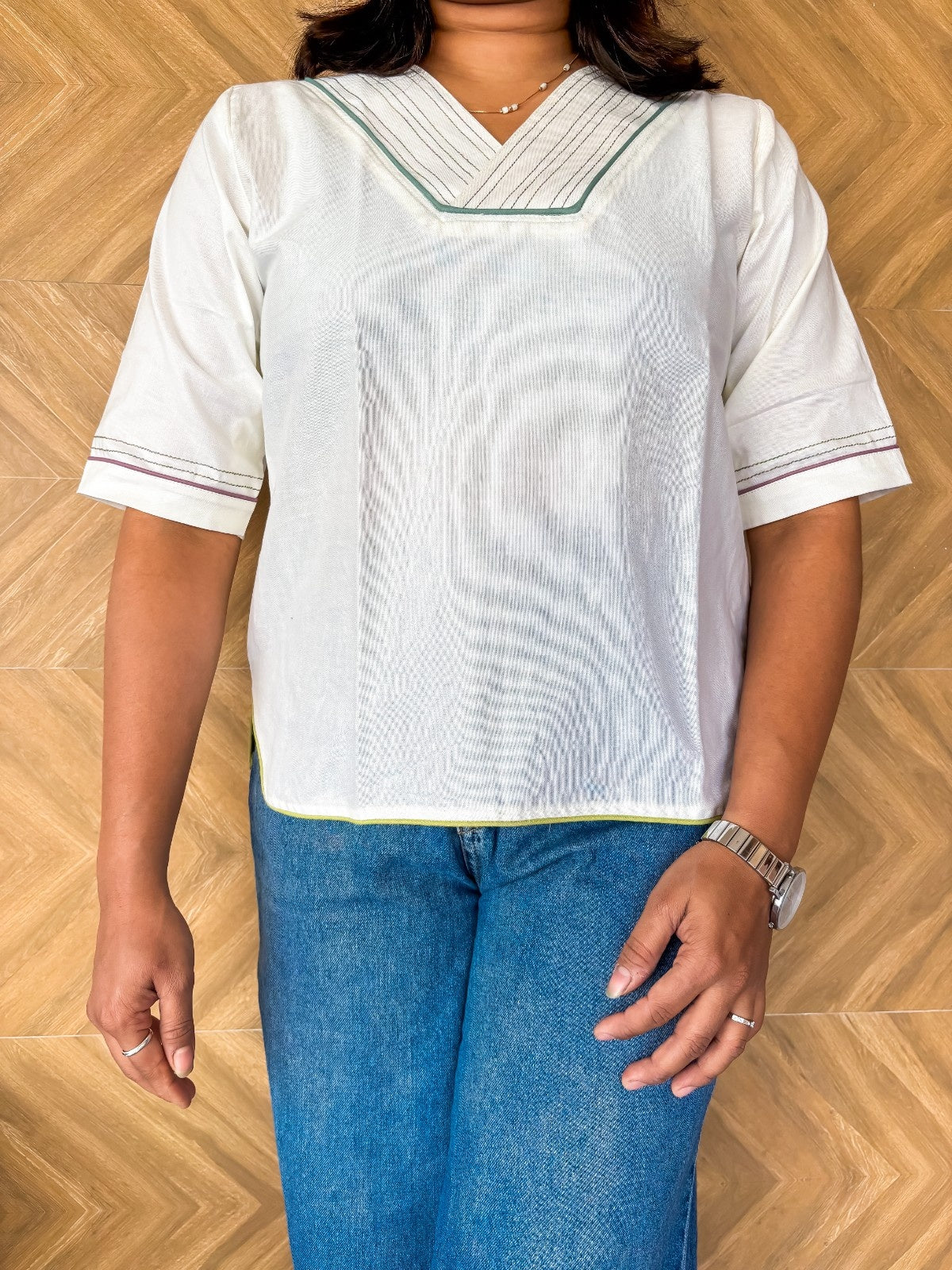 Style this cotton-linen V-neck top with your favorite jeans for a relaxed vibe or pair it with tailored trousers for a more polished look. Designed for versatility and all-day comfort, it’s a must-have for your wardrobe.