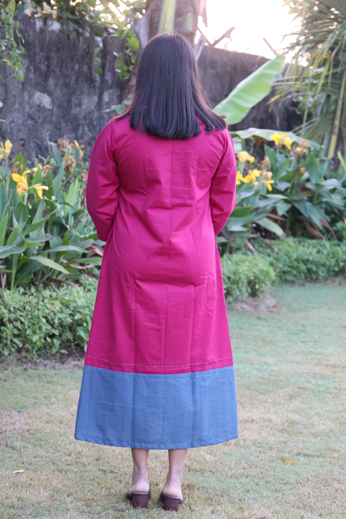 Rani Pink Solid Color Blocked Pure Cotton Dress